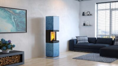Krbová kamna MAGNA mají třístranné prosklení, které umožňuje sledovat plameny z více úhlů. Zaujmou neopakovatelnou strukturou povrchu i příběhem. Opláštění je vyrobeno ze 100 % recyklovaného skla – z lahví, nádob i zbytků solárních panelů – což se odráží v jedinečné kresbě povrchu.