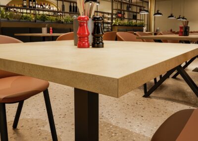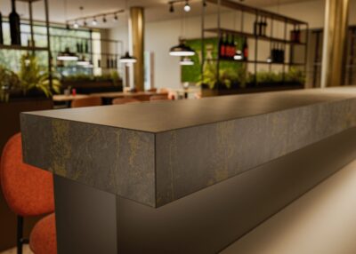 Výrobce Pfleiderer je znám pro své kreativní reprodukce materiálů v imitaci kamene, kovu a textilu. U imitací kamene najdeme velké množství dekorů betonu, mramoru a teraca. U dekorů mramoru upoutají pozornost neobvyklé barvy a tmavé varianty s výrazným zlatým nebo karamelově zbarveným žilkováním, které se dají dobře kombinovat s jemnými uni.